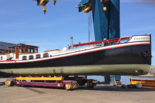 Der ursprüngliche Name des Schiffes war VER-ANDEREN = Niederländisches Wortspiel. Ver = weit weg (wegfahren), ANDEREN = Heimatdorf des ersten Eigners. Wir haben das für uns geändert in VERANDEREN, was man unschwer mit VERÄNDERN übersetzen kann. Ein Name, der für unsere veränderte Lebensgestaltung steht. Die MS VERANDEREN wurde im Jahre 2000 im Auftrage der von Enkhuizen Maritiem nach Plänen von Scheepswerf Boot te Alphen. Ch. Rijn gebaut. Es gibt unseres Wissens noch zwei Schwesterschiffe. Der Rumpf wurde gebaut von Enkhuizen Maritiem-Russland in Rybinsk. Erste Eigner des Schiffes waren Marieke Bosma und Laurien Ausma in Groningen.