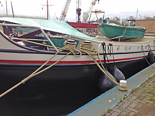 Das Schiff ist eingewintert. Das heisst: Die Heizung ist abgestellt (wir überwintern also „kalt“), das System ist natürlich mit Frostschutz gefüllt. Das Frischwasser-System ist geleert und mit Druckluft ausgeblasen, Steuerhaus, Kukuks, Kran, Lüfter etc. haben ihre Winterabdeckungen übergestreift erhalten. VERANDEREN liegt sicher an der Kade der Werft Multiship in Harlingen, immer noch am Landstrom angehängt (Batterien!). Die Taue sind so belegt, dass auch nicht zu grosse Wasserstands- Schwankungen mitgemacht werden und trotzdem auch starke Winde oder von den Berufsschiffen verursachter Wellengang schadlos überstanden werden sollten. Was da so simpel tönt, nimmt uns jeweils ca. eine Woche in Anspruch. Weil- auch im Innenbereich will man keine Feuchtstellen haben, es soll keine vergessene Wasserflasche zerbersten, Schubladen, Stauräume wollen durchlüftet werden etc.